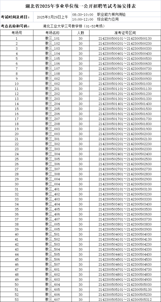 根据湖北省人事考试院的安排,湖北省2025年事业单位统一公开招聘笔试将于2025年3月29日(星期六上午)在我校举行,为确保各位考生顺利参考,现将有关事项提示如下: