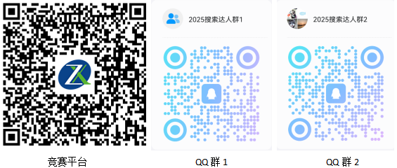 4.在线辅导:参赛学生可加入2025搜索达人QQ群(群1:754305719、群2:472572623)咨询并获取帮助。 |