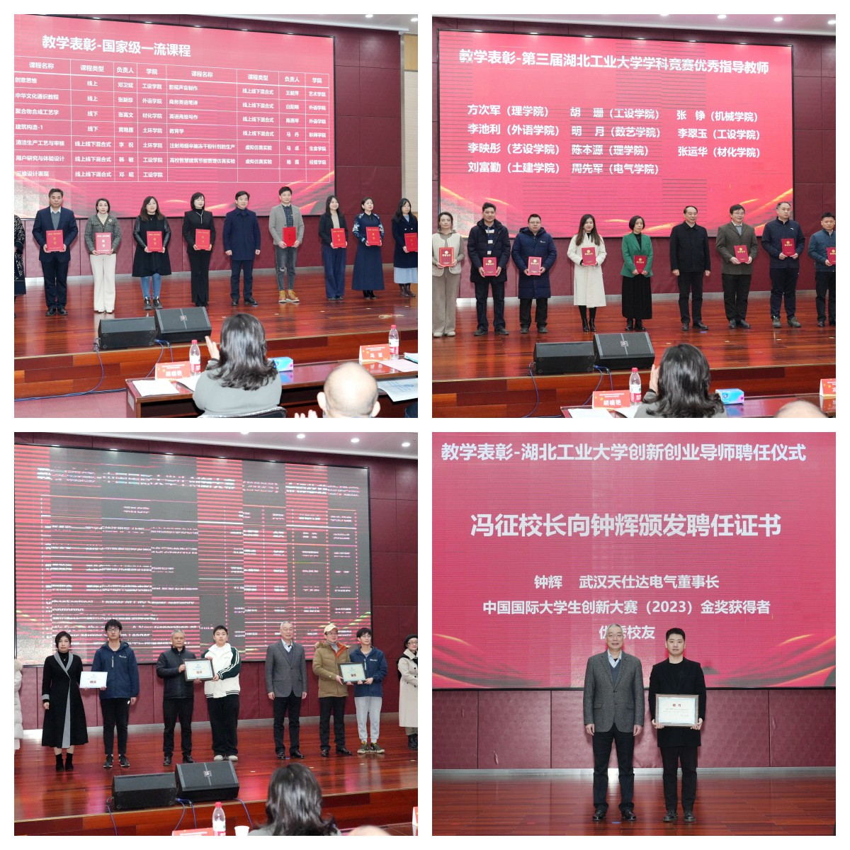 大会对2023年以来获批国家级一流课程、学科竞赛获奖等本科教育教学的集体和个人进行了表彰,校领导分别为获奖者颁奖并合影留念。