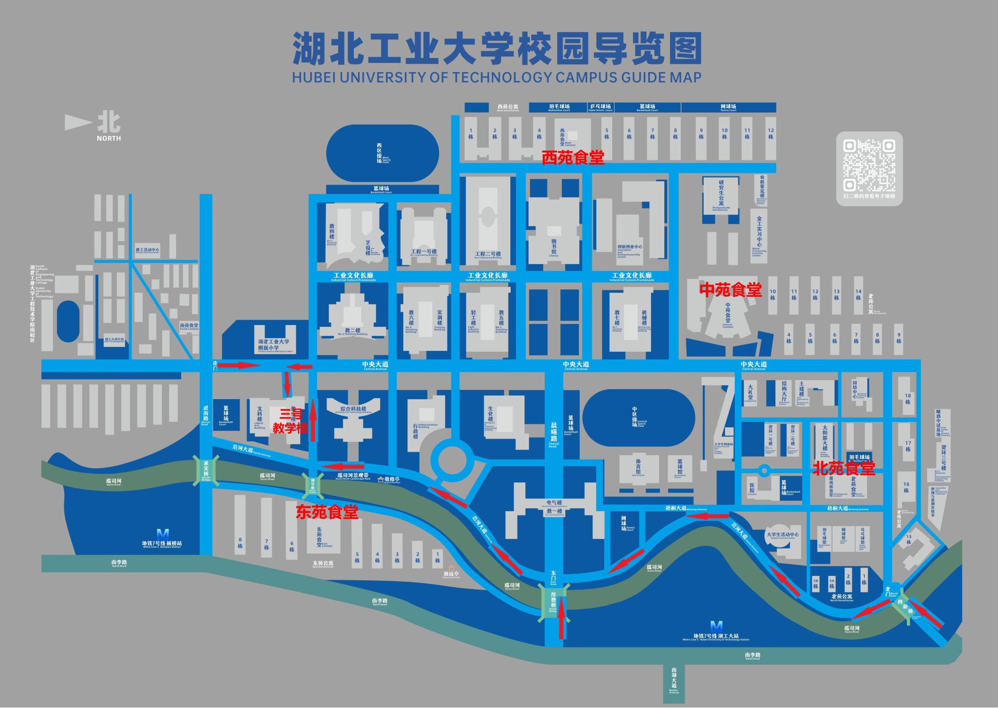 ①乘坐地铁7号线在湖工大站下车,B出口直行约100米;