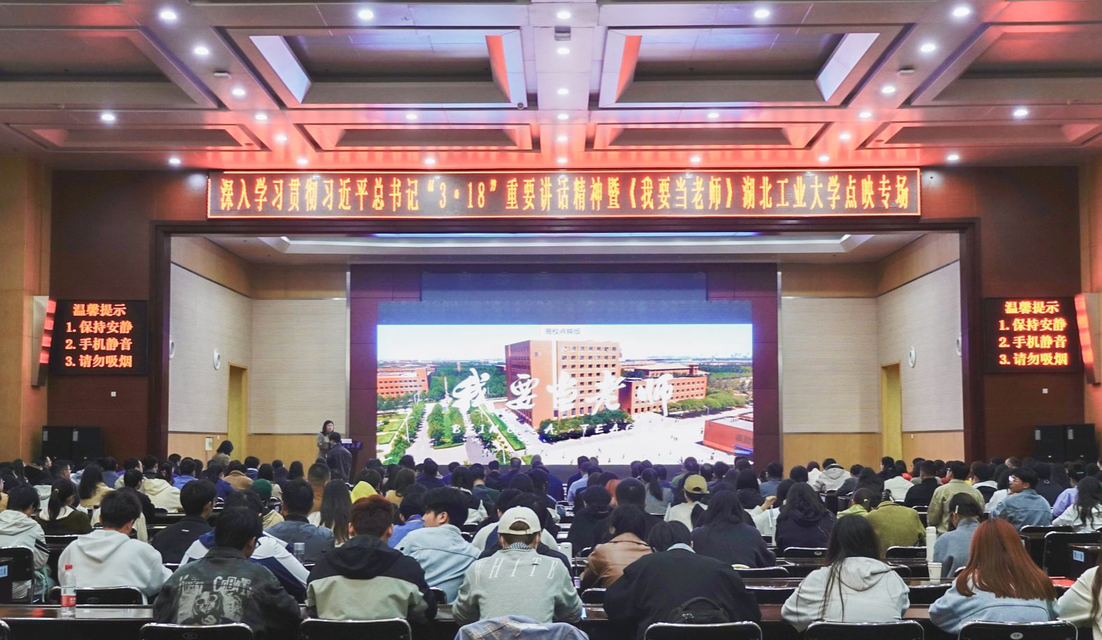校党委理论学习中心组成员、各教学学院党委书记、马克思主义学院全体师生、全体学生工作队伍、职业技术师范学院学生代表参加观影学习。
