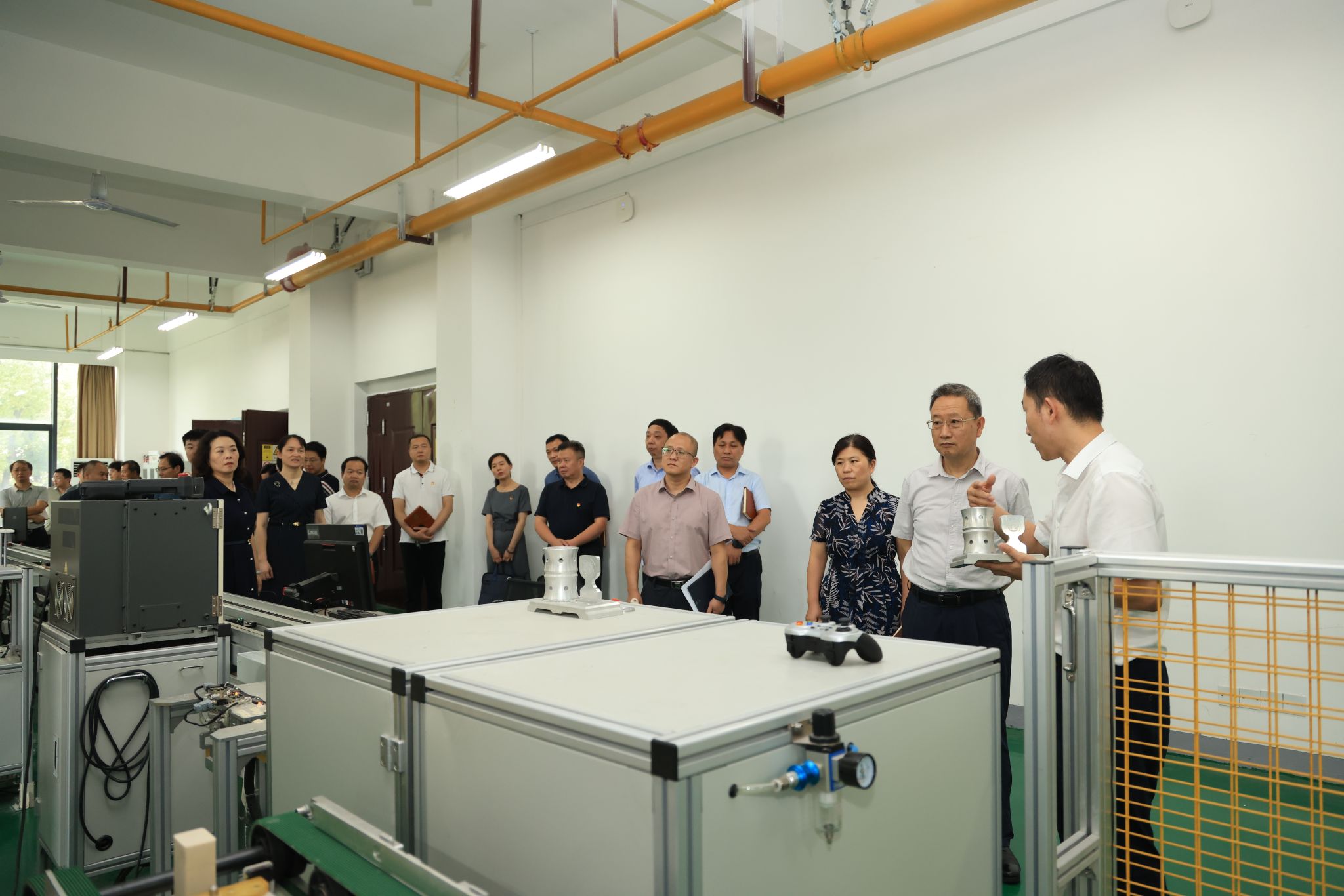 在现场调研环节,全体人员参观了吉祥坊手机官网智能制造产线实验室,现场感受智能制造的强大力量。会上,与会人员通过观看视频,集中学习了省委十二届六次全会精神。在交流研讨环节,党委常委、副校长宋小春,党委常委谭佐军,机械工程学院副院长薛欢结合工作交流了学习体会,土木建筑与环境学院教师代表李丽华教授从学科专业建设的角度作交流发言。