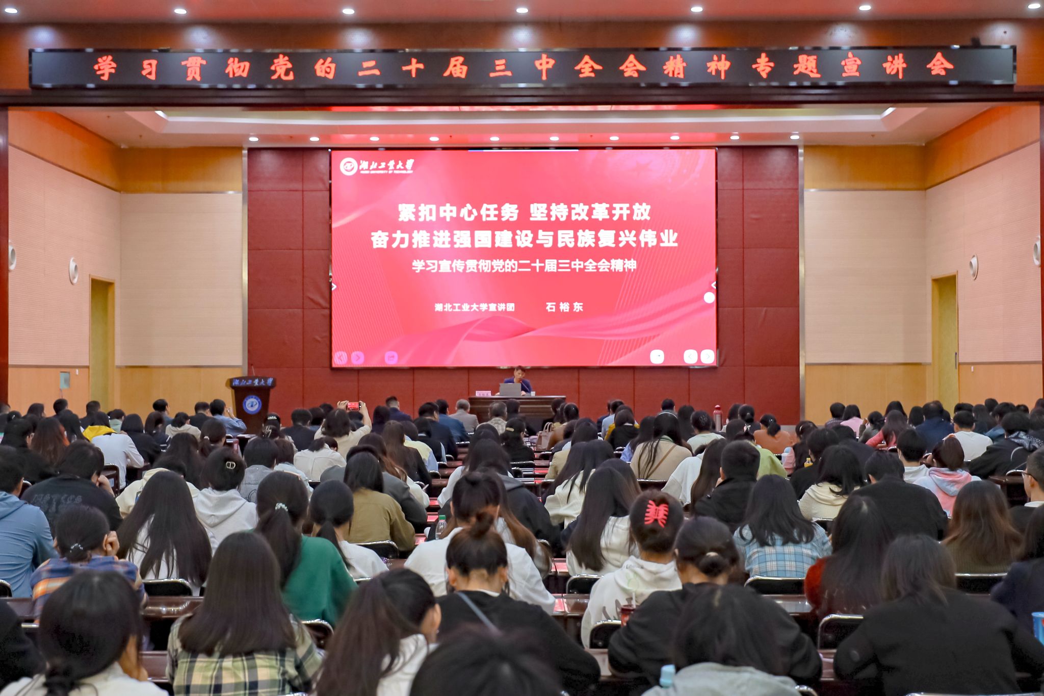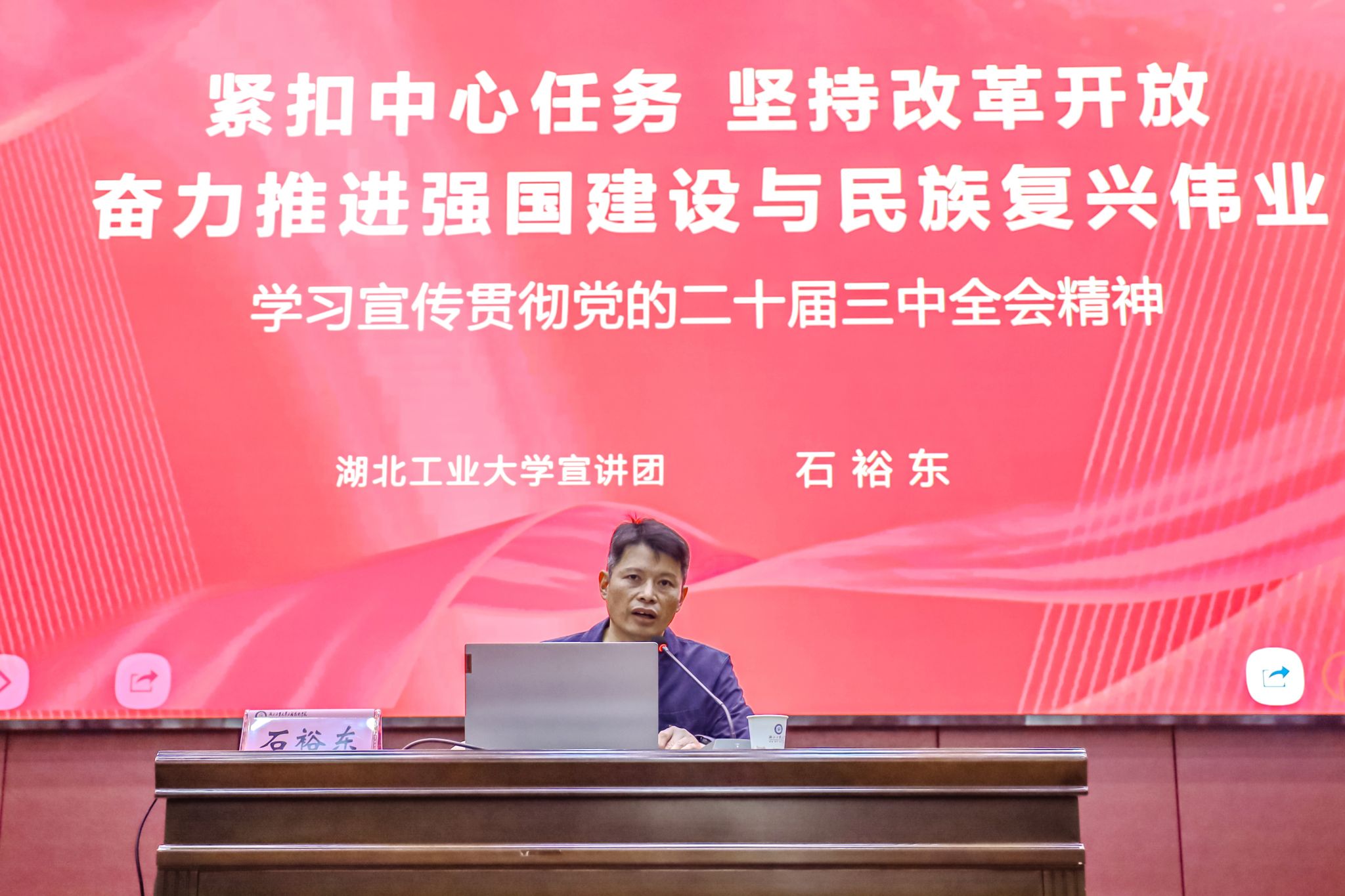 宣讲会上,石裕东以《紧扣中心任务,坚持改革开放,奋力推进强国建设与民族复兴伟业》为题,从深刻领会全会的重大意义、深入领会习近平总书记在全会上的重要讲话精神、全面准确理解《决定》提出的进一步全面深化改革重大举措、全力以赴推动全会精神在吉祥坊手机官网落地见效等四个板块,对党的二十届三中全会精神作了全面宣讲和深入阐释。