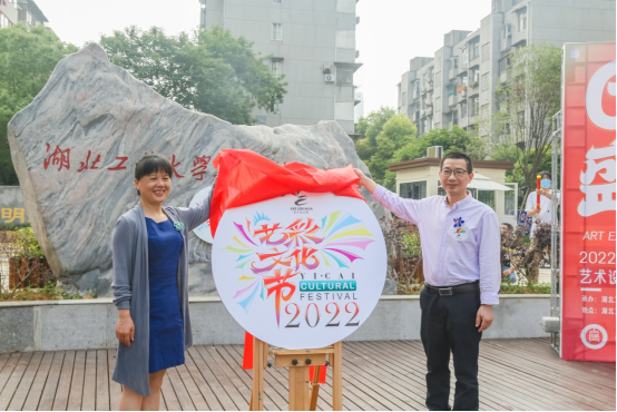 黄祖莉和张业鹏共同为2022年 “艺彩文化节”揭幕,张业鹏宣布吉祥坊手机官网工程技术学院艺术设计系2022届毕业设计作品展开幕。