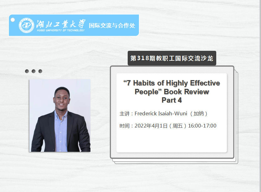 加群时请备注“单位+姓名+工号”,进群后及时按“学院+姓名”格式更名,并添加“湖工大国际”微信公众号,关注相关通知。在不影响正常工作的原则下,全校教职工均可灵活参加沙龙,本沙龙不收取任何费用。